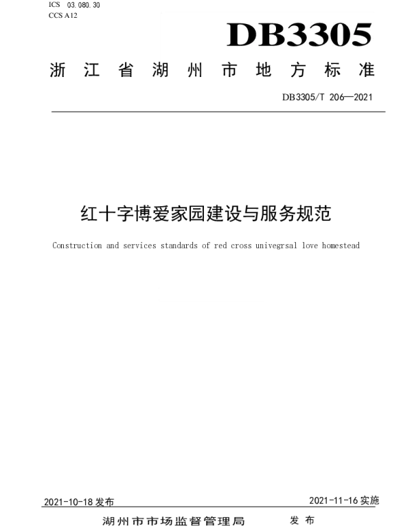 《DB3305/T 206-2021红十字博爱家园建设与服务规范》是浙江省湖州市发布的关于红十字会基层服务场所建设和服务内容的标准。以下是对该标准中部分重要条文的详细解读。