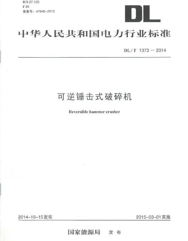 总之,《DLT1373-2014 可逆锤击式破碎机》作为一项重要的行业标准,对于保障产品质量、提高设备性能、促进产业健康发展具有重要意义。