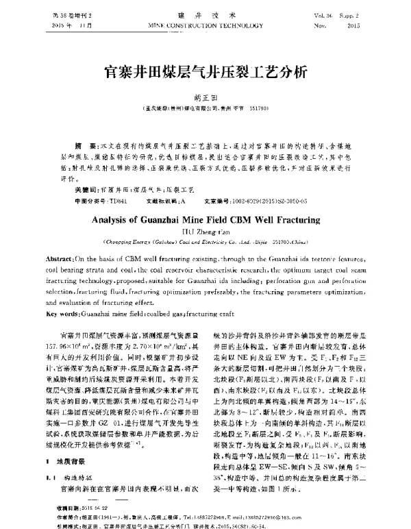 论文首先介绍了官寨井田的基本地质条件和煤层气资源概况。官寨井田位于中国某煤炭资源丰富的地区,其煤层埋深适中,渗透性较好,具备良好的煤层气开发潜力。然而,由于煤层本身结构复杂,孔隙度较低,导致煤层气的自然渗流能力较差,因此需要通过压裂技术来改善储层的渗透性能。